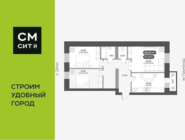 Комфортабельный сити-квартал от СМ.СИТИ с закрытыми дворами, собственной торговой сити-авеню в экологически благополучном районе рядом с торговыми, спортивными, досуговыми и медицинскими центрами.