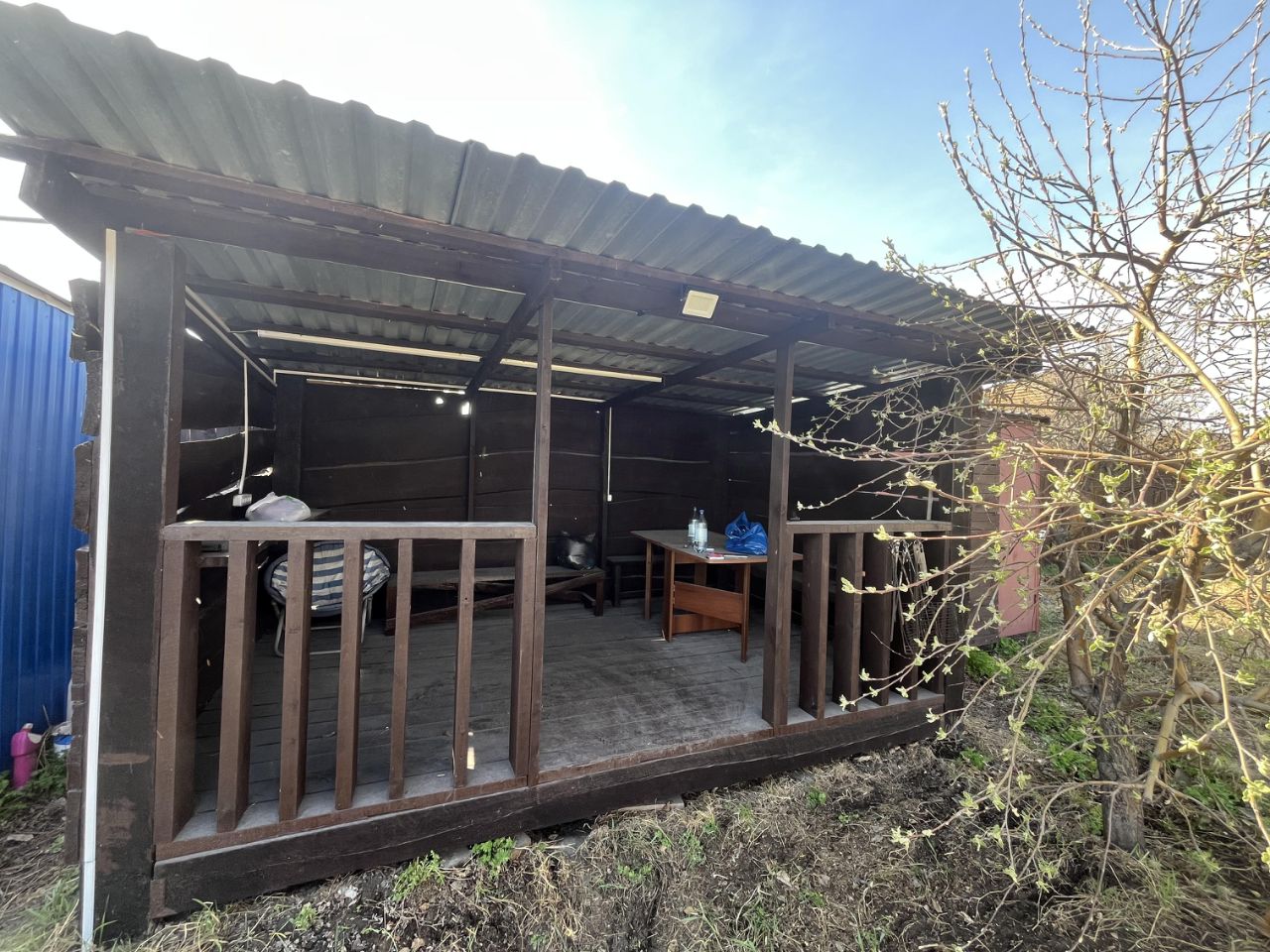 На участке бытовка, беседка, постройка под хозпринадлежности, душевая, туалет, магазин действующий с отдельным входом. Свет, вода. Люди проживают круглогодично, возможность прописки. Рядом остановка, 22 маршрут. На участке 2 яблони, ярга, малина. Продаем в связи с переездом.Торг