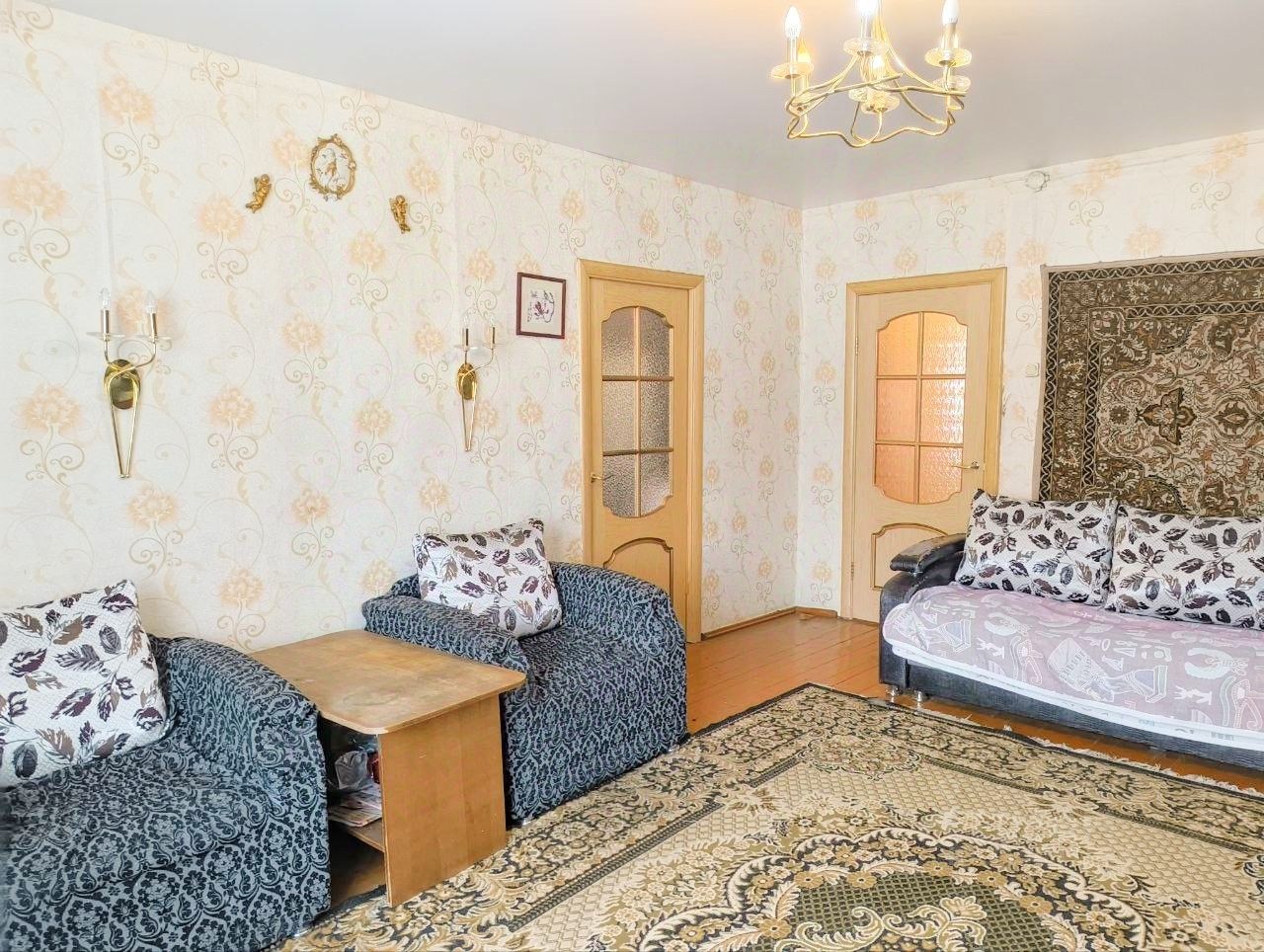 Предлагается Вашему вниманию просторная трехкомнатная квартира в доме на три хозяина. В квартире выполнен качественный ремонт. На просторной кухне: современный кухонный гарнитур со всей необходимой бытовой техникой (двухкамерный холодильник, электроплита с духовым шкафом, посудомоечная машина, микроволновая печь). Есть вместительное подпольное хранилище. Комнаты смежно изолированные. В уютной спальне: удобная двуспальная кровать, огромное количество мест для хранения. В гостиной: удобный диван, вместительная стенка и зона отдыха с телевизором. В детской: зеркальный шкаф-купе, диван и детская зона. Санузел разделен, есть кладовая. Присутствует просторная веранда, где можно приятно проводить время летом. В прошлом году был сделан ремонт труб, квартира очень теплая.