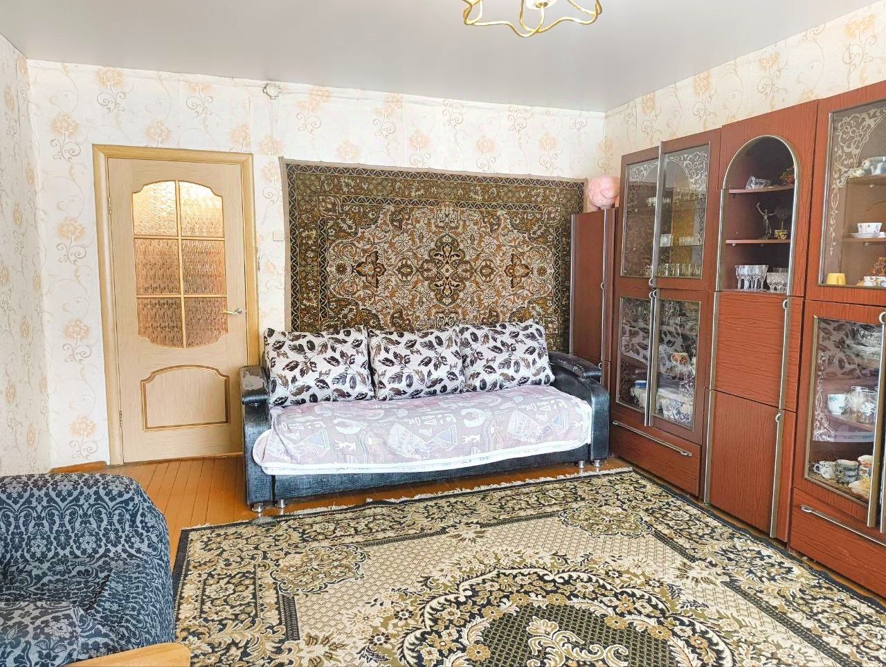 Предлагается Вашему вниманию просторная трехкомнатная квартира в доме на три хозяина. В квартире выполнен качественный ремонт. На просторной кухне: современный кухонный гарнитур со всей необходимой бытовой техникой (двухкамерный холодильник, электроплита с духовым шкафом, посудомоечная машина, микроволновая печь). Есть вместительное подпольное хранилище. Комнаты смежно изолированные. В уютной спальне: удобная двуспальная кровать, огромное количество мест для хранения. В гостиной: удобный диван, вместительная стенка и зона отдыха с телевизором. В детской: зеркальный шкаф-купе, диван и детская зона. Санузел разделен, есть кладовая.