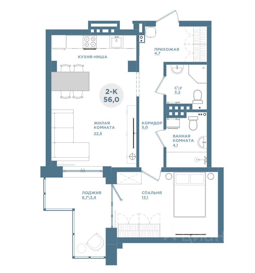 Продаётся 2-комнатная квартира в строящемся доме (Дом 1-1), срок сдачи: IV-кв. 2025, общей площадью 56.3 кв.м., на 2 этаже. Кваpтиpа oт зacтройщика