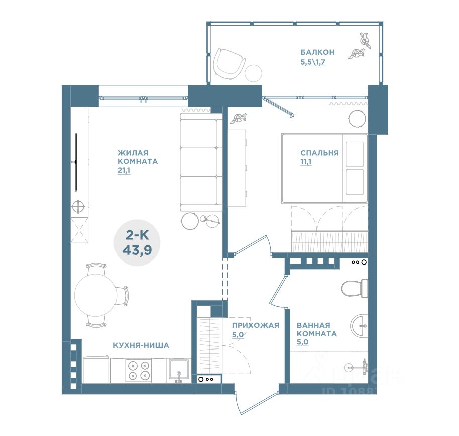 Продаётся 2-комнатная квартира в строящемся доме (Дом 1-1), срок сдачи: IV-кв. 2025, общей площадью 43.8 кв.м., на 15 этаже. Кваpтиpа oт зacтройщика