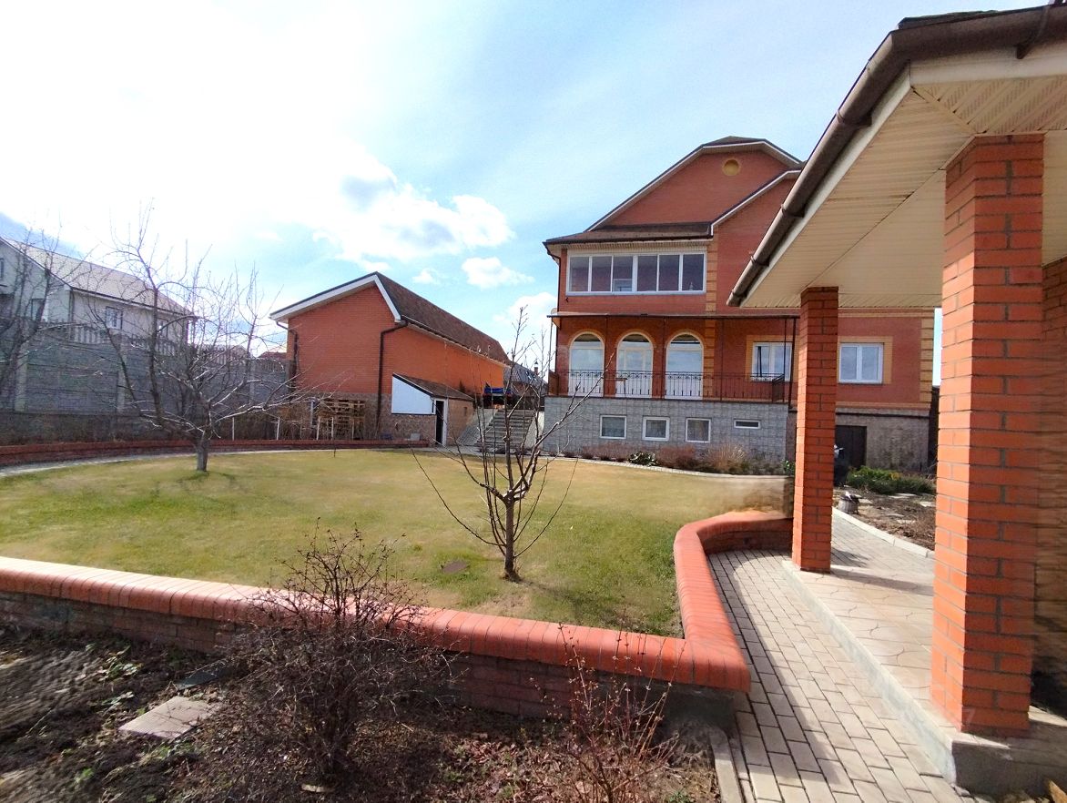 Участок и дополнительные постройки Ухоженный участок с ландшафтным дизайном разделен на зоны, где гармонично соседствуют две большие теплицы, баня из кирпича с парилкой, комнатой отдыха, душевой и отдельным санузлом, а также летняя кухня со входом со двора , как часть цокольного этажа. Гараж и автоматические ворота завершают образ идеального хозяйства.