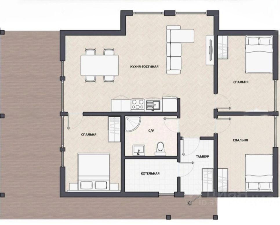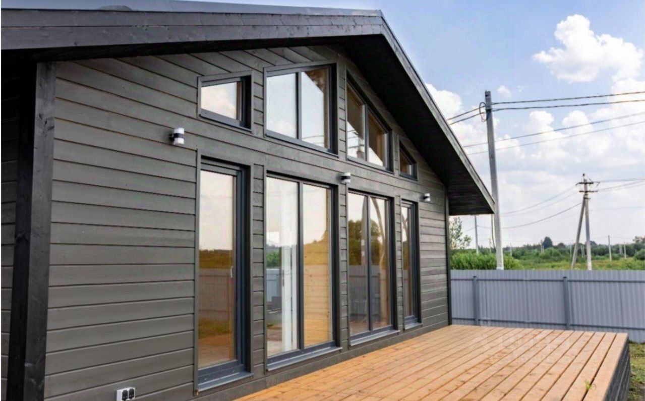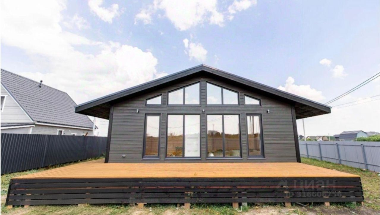 В доме просторная кухня-гостинная 40кв.м. , 3 спальни около 11-12 кв.м., удобная планировка, комнаты правильной формы, дом построен по каркасной технологии с утеплением.