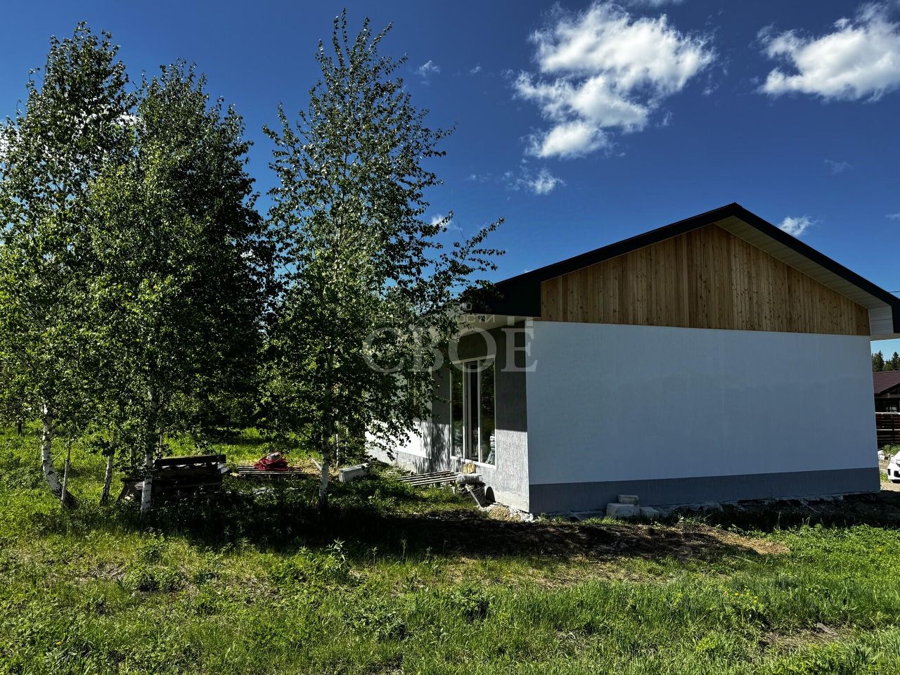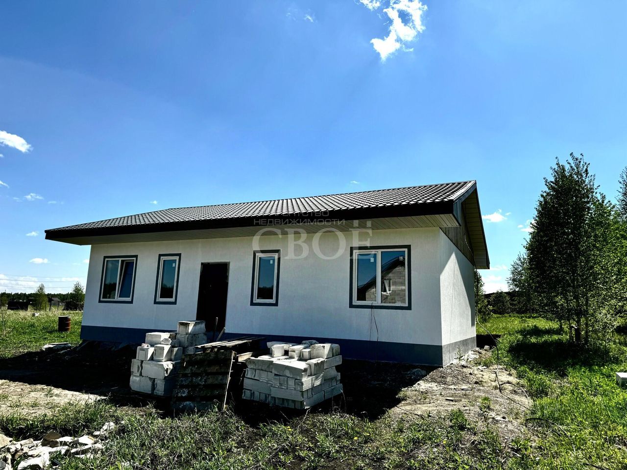 Преимущества: Год постройки: 2025. Площадь: 100 кв. м, жилая площадь — 56,78 кв. м, площадь кухни — 24 кв. м. Расположение: Емельяновский район, Элитовский сельсовет, ДНТ Посёлок Западный-Элита, 2-я Северная улица, 18. Цена: выгодное предложение! Материалы: дом стоит на 26шт 4 метровых сваях, подушка ПГС и залита плита с 2-ым армированием 30см, на плите лежит утеплитель 100мм, залита полусухая стяжка, 300 газотеплоблок с плотность. 350 стены,перекрытия деревянные с утеплением 200 мм. Кровля из металлочерепицы Мантеросса графитного цвета. Входная дверь с терморазрывом. Отопление - электрокотел Thermex Cometa 12 квт с полной автоматикой.