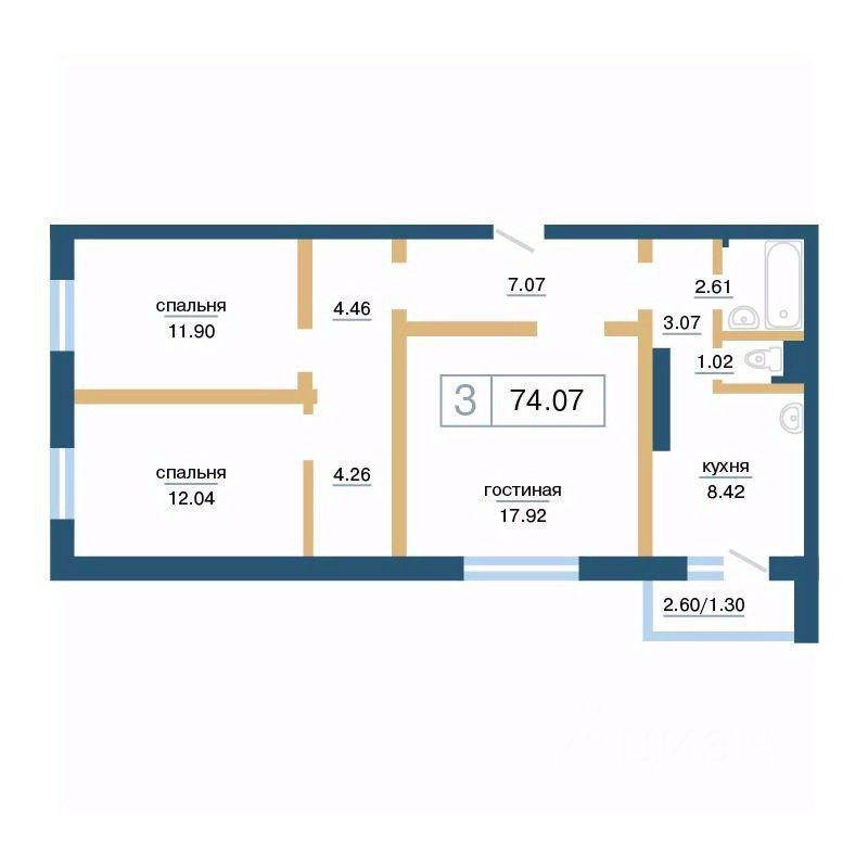 Продаётся 3-комнатная квартира в строящемся доме (Дом 13А), срок сдачи: II-кв. 2026, общей площадью 74.07 кв.м., на 7 этаже. Расположение, транспортная доступность Жилой комплекс ''Нанжуль-Солнечный'' - это квартал, в состав которого входит четырнадцать панельных зданий бюджетного класса высотой от 16 до 26 этажей, а также множество инфраструктурных объектов. Новостройка находится на северо-восточной окраине города, в Советском районе, на территории микрорайона Солнечный, рядом с Молодежным проспектом, улицами Соколовская, Ерофеевская, проспектом 60-летия образования СССР и Енисейским трактом. Путь от ''Нанжуль-Солнечного'' до центральной части города займет около получаса. За пять минут от комплекса можно доехать до железнодорожной станции Красноярск-Северный. Инфраструктура Собственная инфраструктура ''Нанжуль-Солнечного'' включает в себя: ФОК, взрослую и детскую поликлиники, женскую консультацию, несколько детских садов, общеобразовательную школу, а также офисы, магазины, сервисные и оздоровительные учреждения на нижних этажах и во встроенно-пристроенных помещениях. Рядом с кварталом находятся: детские сады 112, 328, 326, частный детский сад ''Сорванцы'', аква-клуб ''Утята'', детская больница 8, детская поликлиника 1, городская больница 2, родильный дом 1, почта, филиал Сбербанка, школы 144, 139, 134, рынок ''Простоквашино'', супермаркет ''Командор'', магазины ''Солнечный'', ''Березовский'', ''Ярмарка'', пансионат ''Солнечный''. За пять минут от ''Нанжуль-Солнечного'' можно доехать до инфраструктуры, расположенной около железнодорожной станции Красноярск-Северный, в микрорайоне Метростроитель: торговые центры, гипермаркеты, гастроном ''Красный Яр'', супермаркет ''Командор'', спорткомплекс ''Красноярск''. В пятнадцати минутах езды от комплекса находится микрорайон ''Взлетка'', в котором работают: крупнейшие торгово-развлекательные центры Красноярска ''Планета'' и ''Июнь'', торговые центры ''Взлетка Плаза'', Dommer, торговый комплекс ''Авиатор'', торгово-офисный комплекс ''Арбат'', гипермаркеты ''Лента'', ''Декатлон'', ''Леруа Мерлен'', международный выставочно-деловой центр ''Сибирь'', бизнес-центры ''Весна'', ''Сирус'', 30-этажный деловой центр ''Первая башня'', Институт психолого-педагогического образования, рынок ''Новая взлетка'', Енисейский рынок, ледовый дворец ''Кристалл''. Экологическая обстановка в месте расположения квартала хорошая. Комплекс находится на окраине города, поблизости от пригородных зон, лесов и озер, вдали от промышленных предприятий, на некотором расстоянии от крупных автотрасс. Надежность застройщика Жилой комплекс ''Нанжуль-Солнечный'' - это масштабный проект созданной в 1989 году красноярской компании ''Сибиряк''. Это одна из самых крупных строительных компаний Красноярска, на счету которой десятки реализованных проектов. Компания ''Сибиряк'' строит не только жилые дома, но и детские сады, больницы и спортивные объекты (в частности, она построила несколько объектов для Всемирной зимней Универсиады 2019 года). Помимо ''Нанжуль-Солнечного'' на счету компании