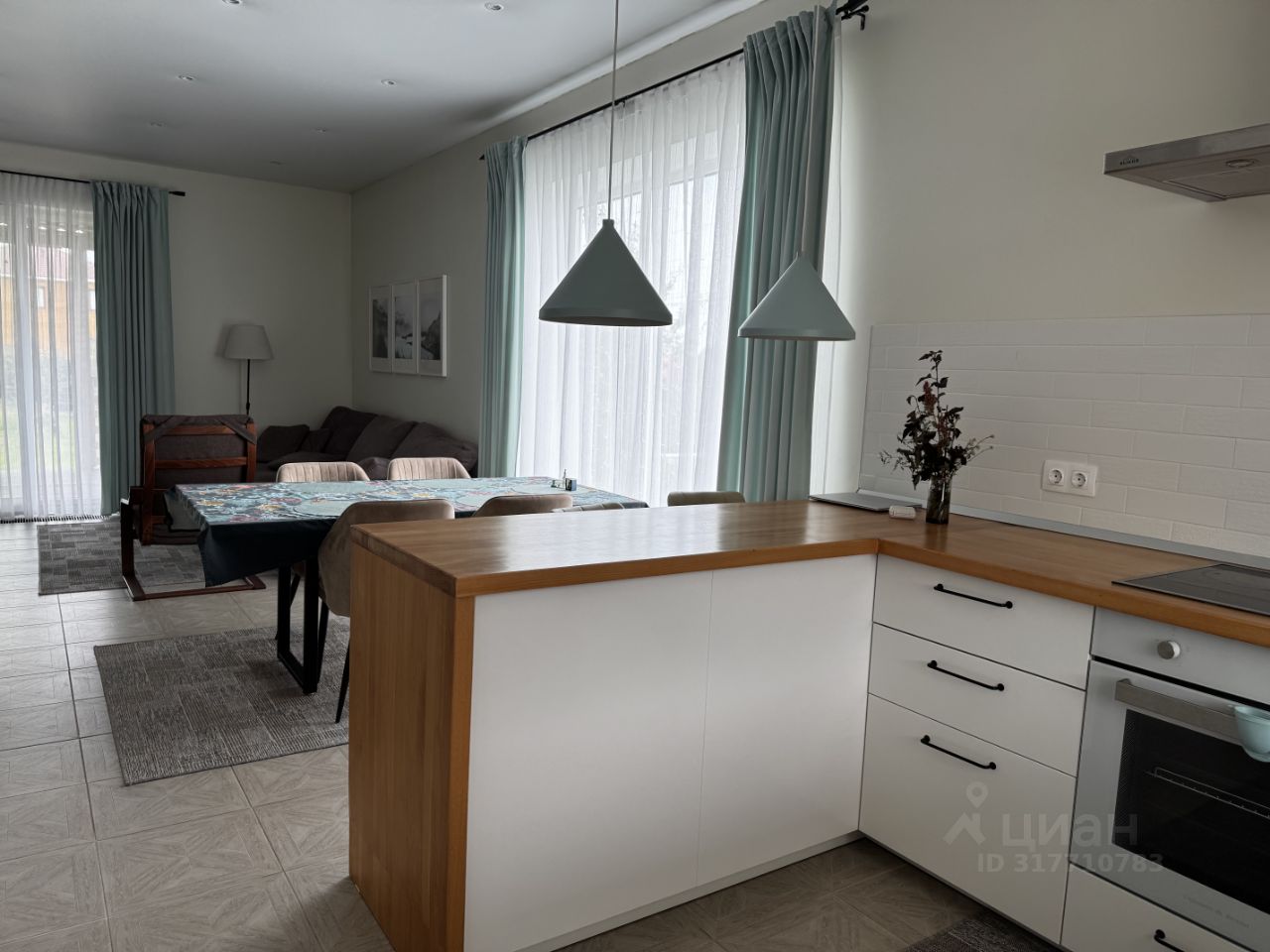 ДОМ: 1 этаж - гардеробная, кухня +гостиная, кабинет, сан.узел, кладовая, тех.комната, гараж, выход на просторную летнюю террасу 2 этаж - 3 спальни, 2 гардеробные и сан.