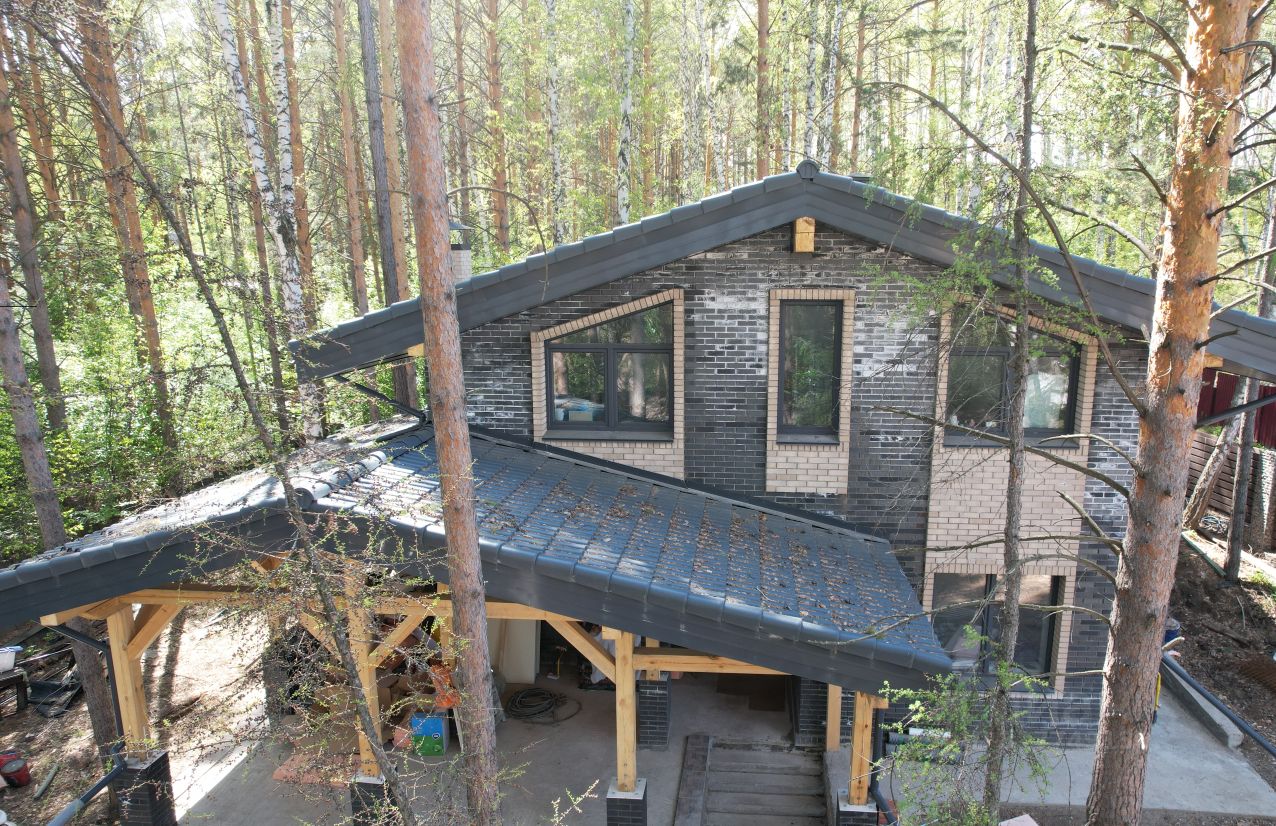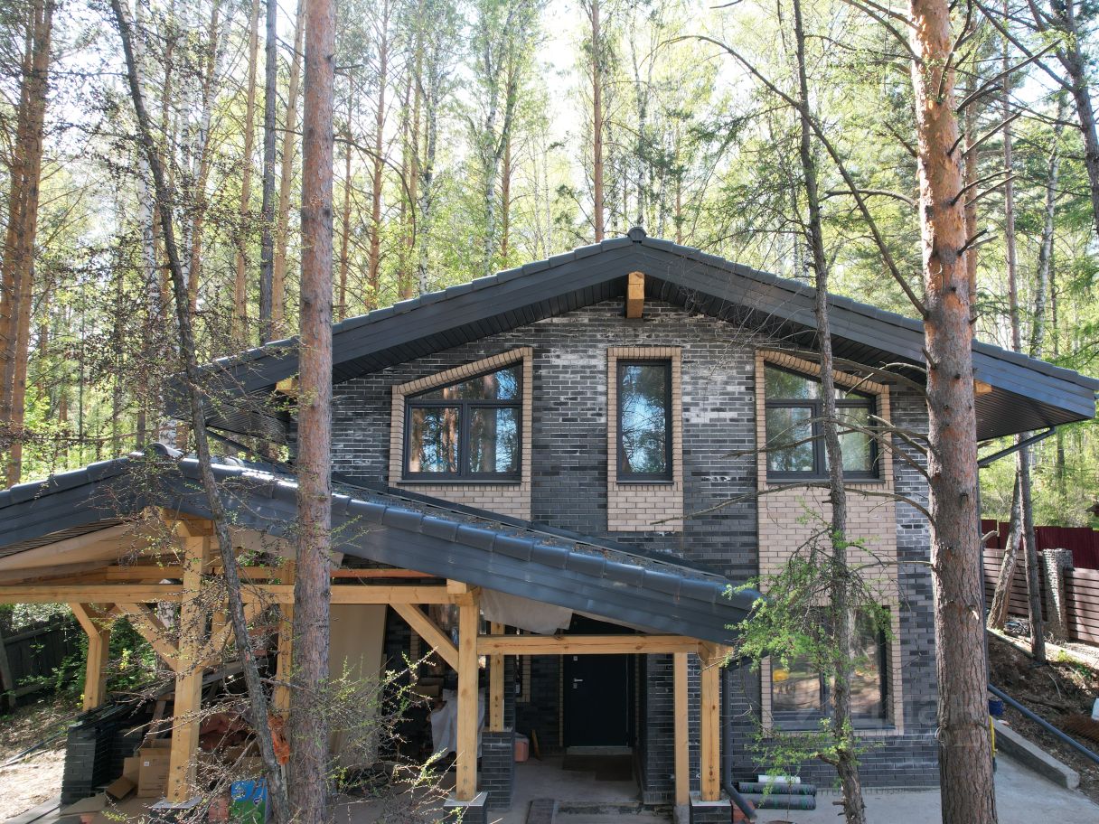 Дом расположен в лесном массиве, тишина и свежий воздух, подъезд круглогодичный, дорогу чистят, откатные ворота, большая парковка, вымощена брусчаткой (6 машин).