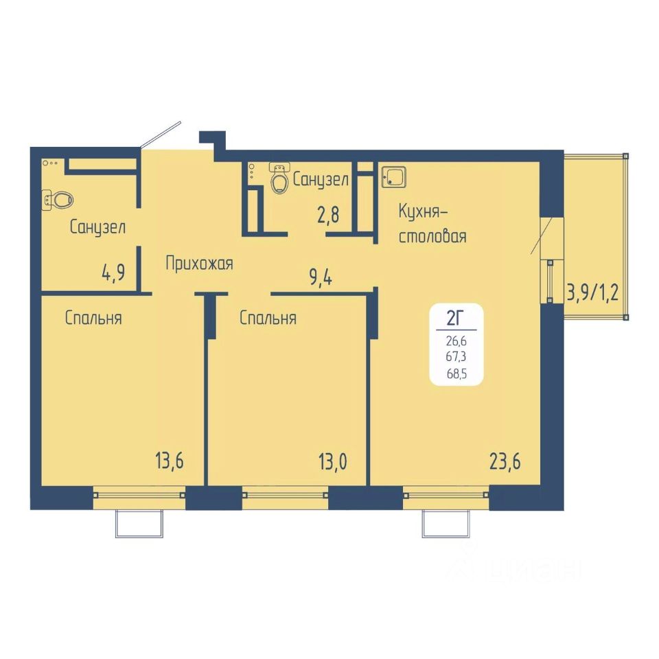 Общая площадь68,5 м2