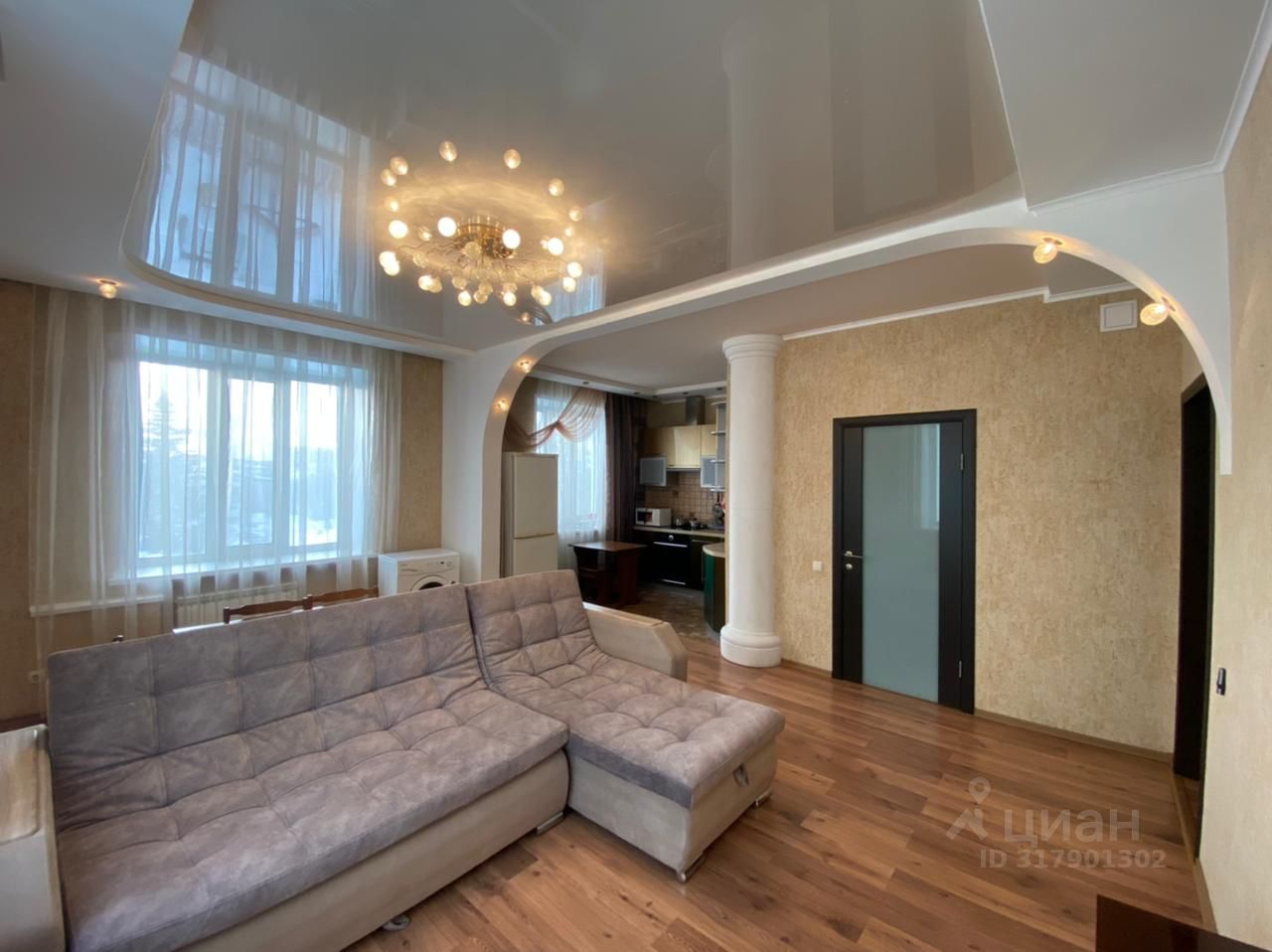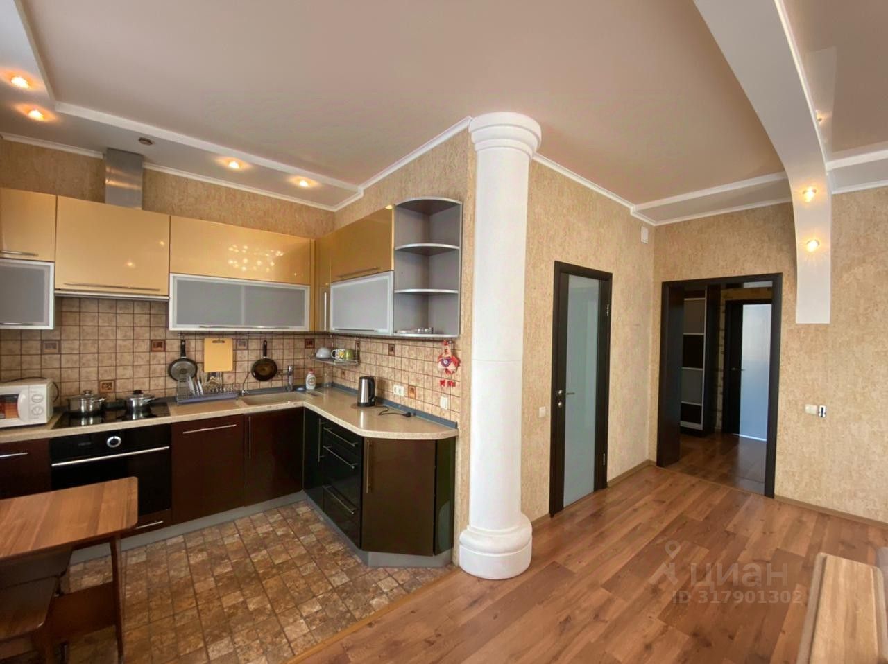 В квартире остаётся стиральная машинка, кухонный гарнитур, духовой шкаф, встроенная варочная индукционная панель.