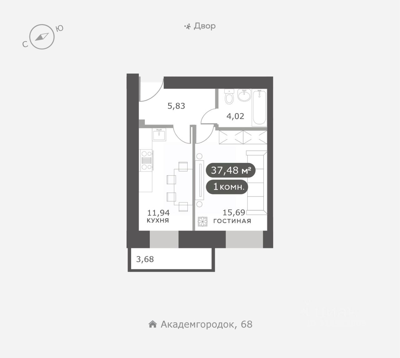 Академгородок, Дом 3, квартира 35.