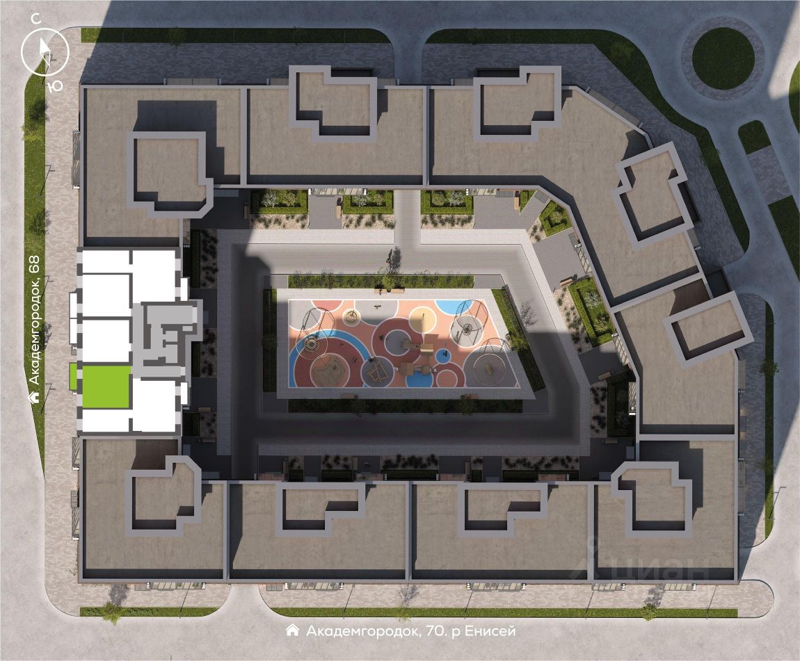 Новый Академгородок - сити-район из восьми кирпичных домов-кварталов на берегу Енисея.