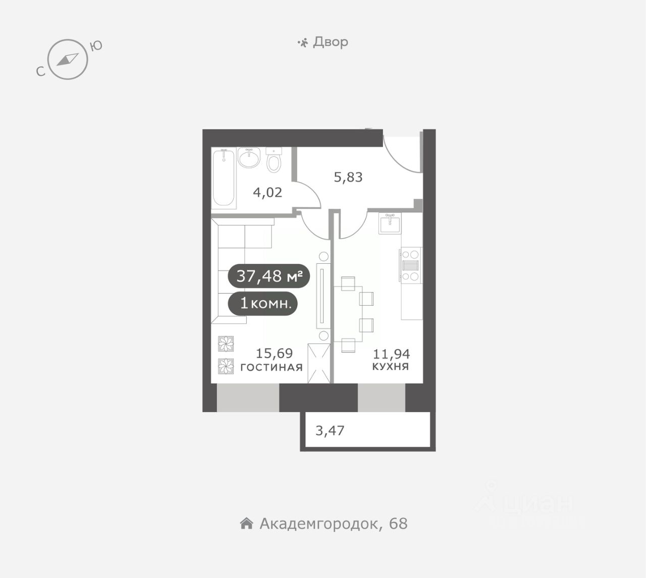 Академгородок, Дом 3, квартира 62.