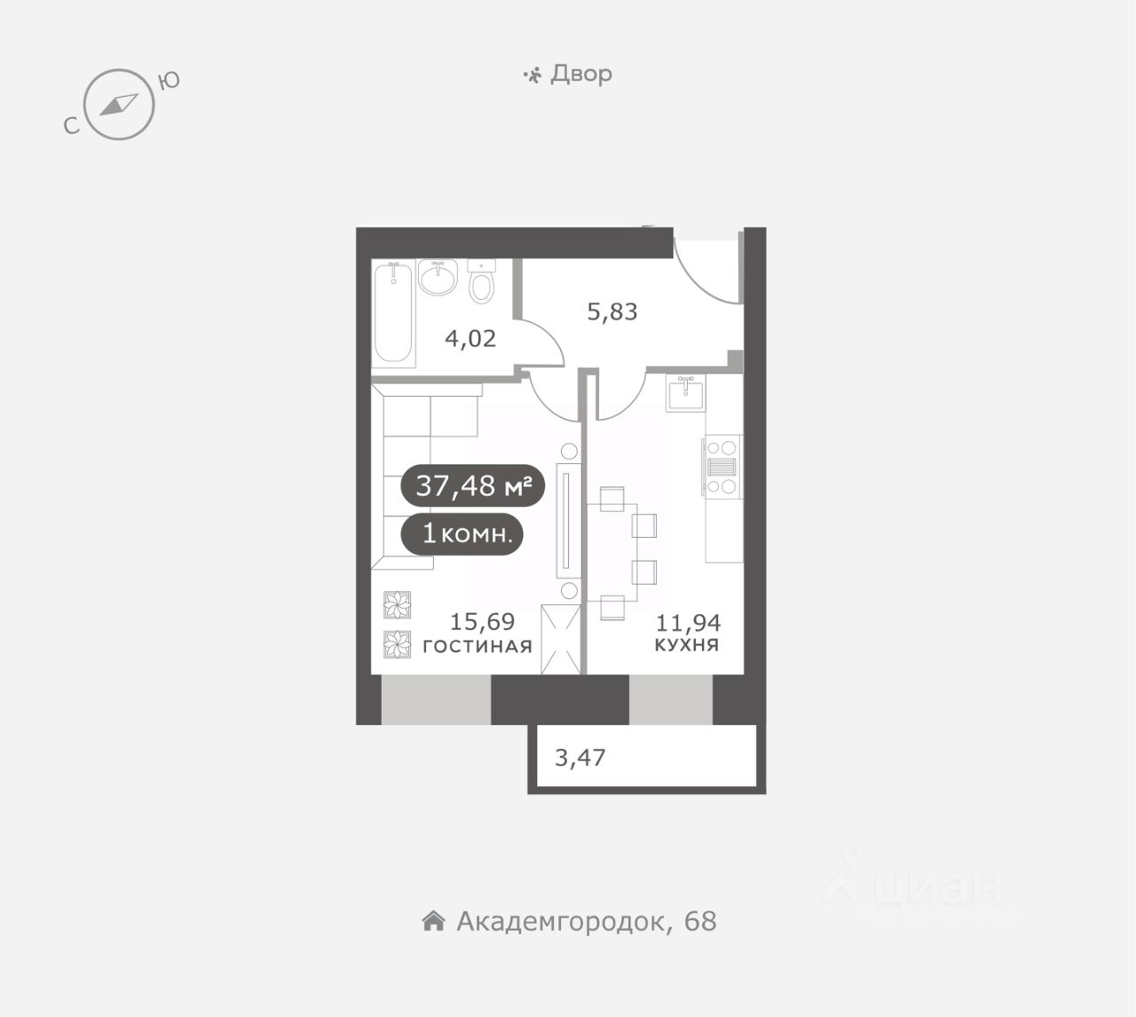 Академгородок, Дом 3, квартира 87.
