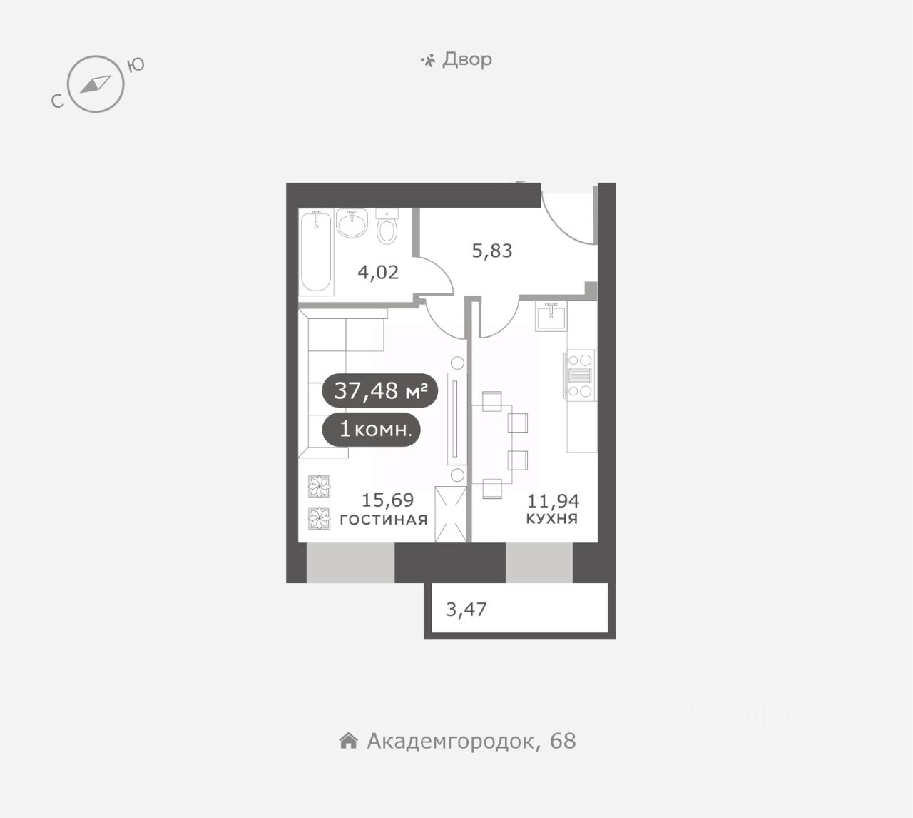 Академгородок, Дом 3, квартира 82.