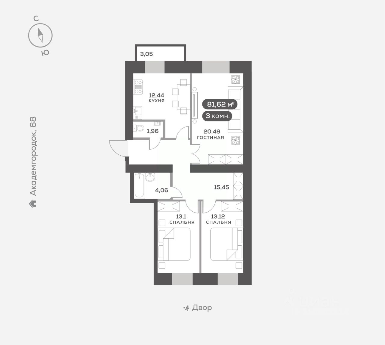 Академгородок, Дом 3, квартира 213.