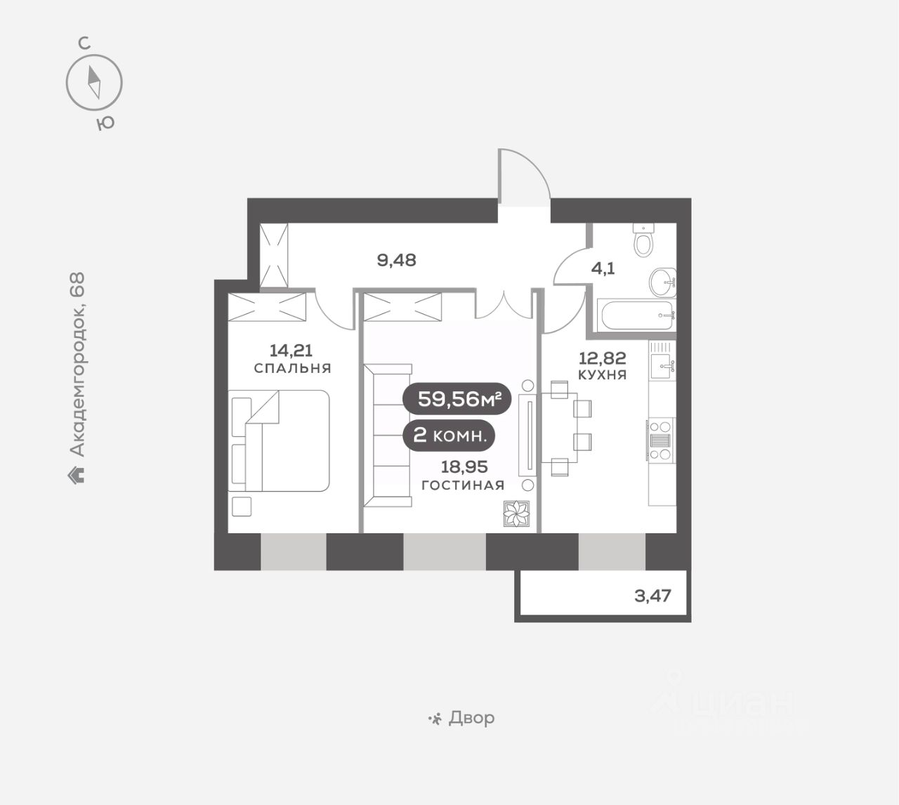 Академгородок, Дом 3, квартира 195.