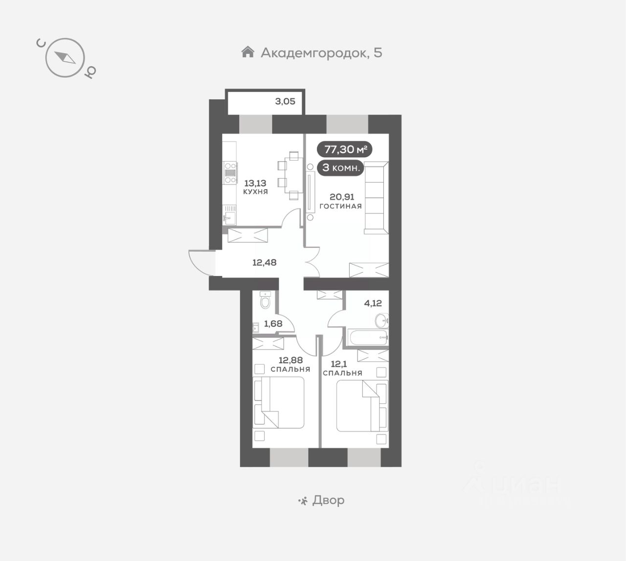Академгородок, Дом 3, квартира 294.