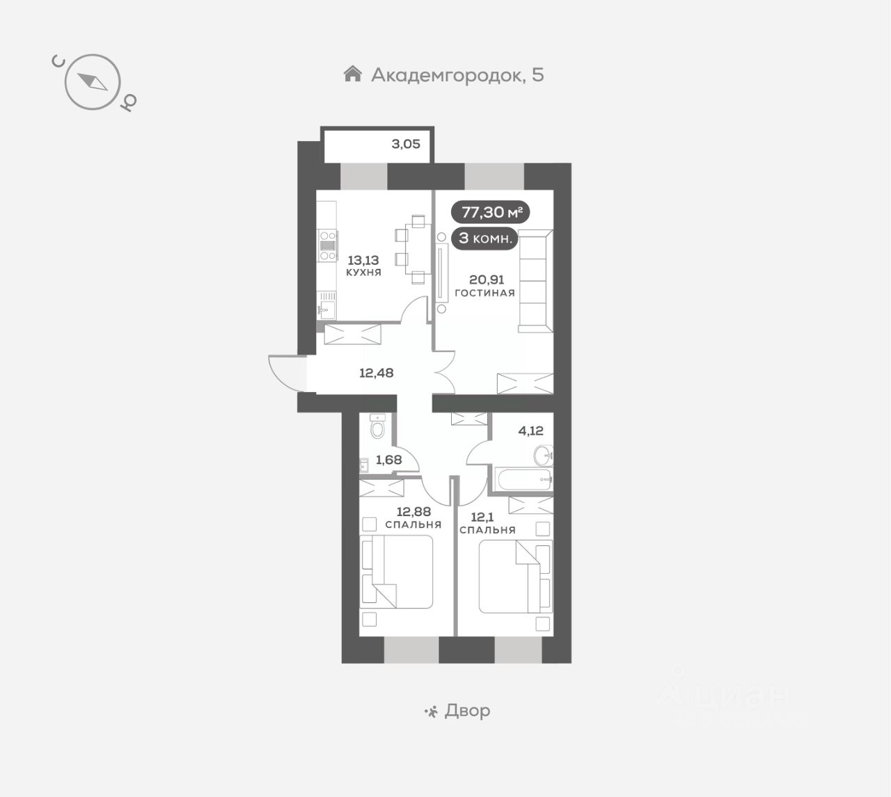 Академгородок, Дом 3, квартира 279.