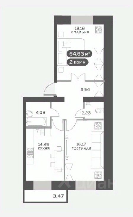 Квартира сдается в отделке ''белый куб''. Выровнены и оштукатурены стены, бетонная стяжка на полу, натяжной потолок, полная электроподготовка и установлена базовая сантехника. Вы получаете ключи от квартиры, подготовленной к воплощению ваших фантазий.