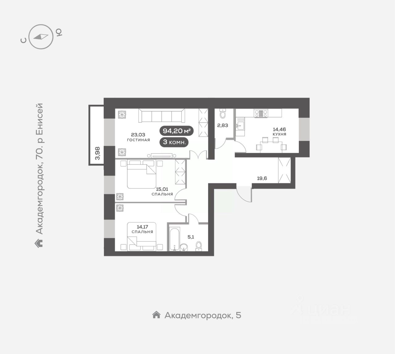 Академгородок, Дом 3, квартира 353.