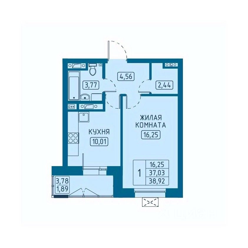 Общая площадь38,92 м2