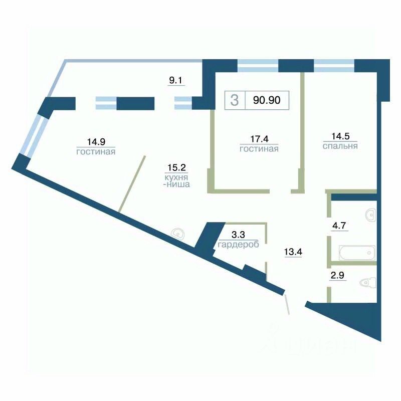 Продаётся 3-комнатная квартира в строящемся доме (Дом 5.2), срок сдачи: I-кв. 2027, общей площадью 90.9 кв.м., на 5 этаже. Набережная Енисея - одно из самых живописных мест в городе и новом районе Красноярск-Сити. Здесь, вдоль улицы Дубровинского, расположен жилой комплекс ''Суриков''. ''Суриков'' формируют три 25-этажных дома с лаконичными выразительными фасадами. Огромные витражи будут отражать всю красоту места и растворяться в пространстве. В разноэтажном Красноярск-Сити высотные башни станут ориентиром и заметной доминантой района. Жить в ''Сурикове'' - значит пользоваться инфраструктурой центра. Рядом набережная Енисея, Центральный парк и Исторический квартал, лучшие театры, музеи и рестораны.