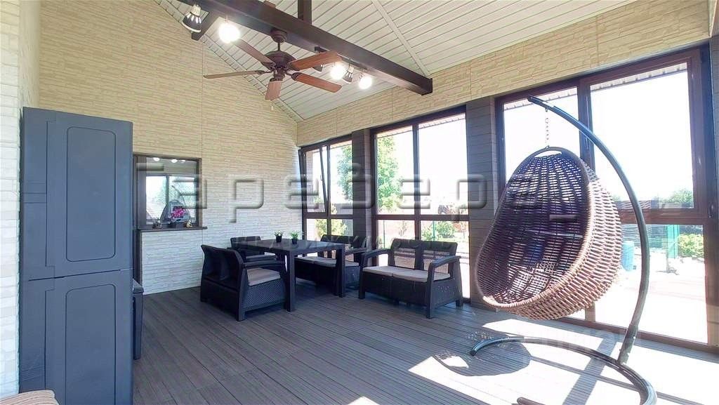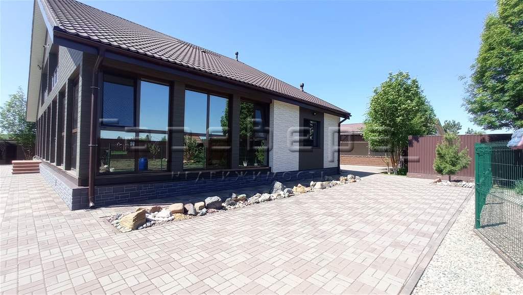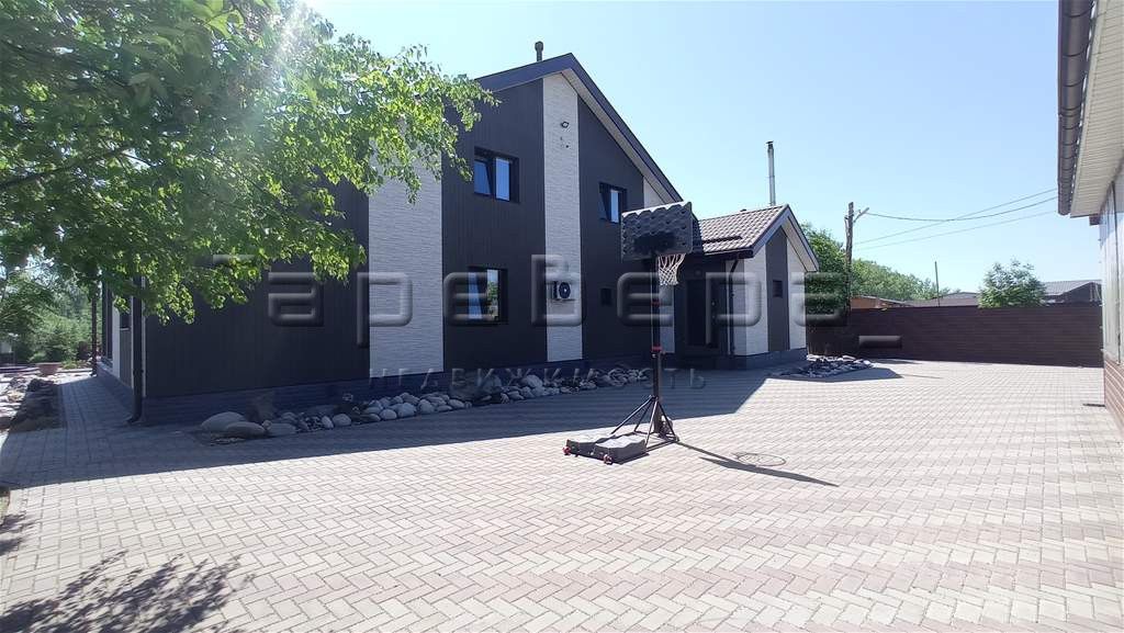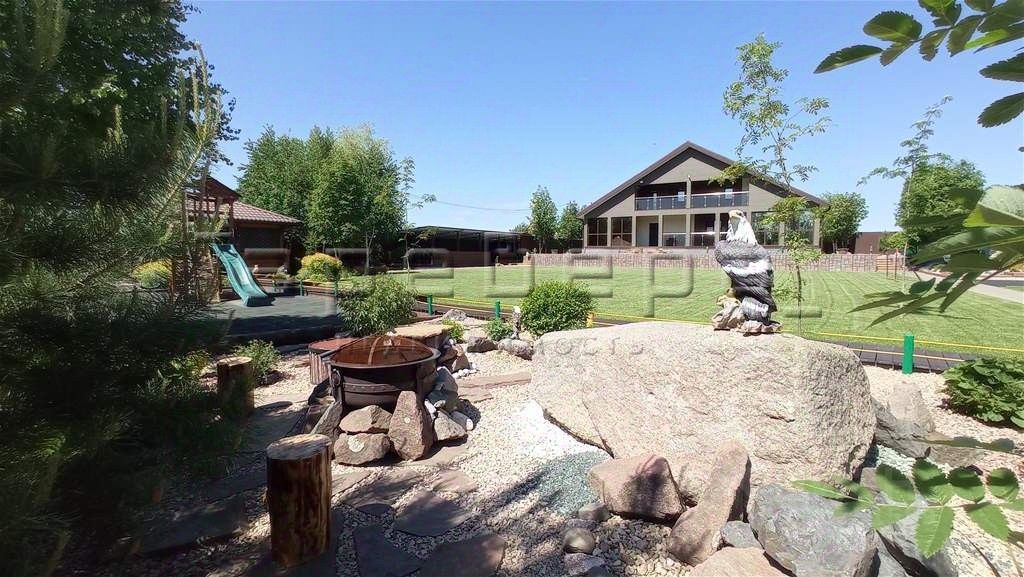 На участке имеется баня, теплая беседка, гараж, навес. Коммуникации — центральные. Площадь дома — 300 м², 7 комнат + мансарда, терраса и веранда. Ремонт, мебель, дом полностью оборудован, установлены 5-тикамерные окна ПВХ (обслуживаются 2 раза в год). Кухня-столовая 20 м², совмещённый санузел, прихожая, отдельная котельная с двумя котлами (электрический и твердотопливный). Фундамент ленточный бетонный, стены — качественный утеплённый брус 18х18, облицованный фибро-цементными японскими панелями.
