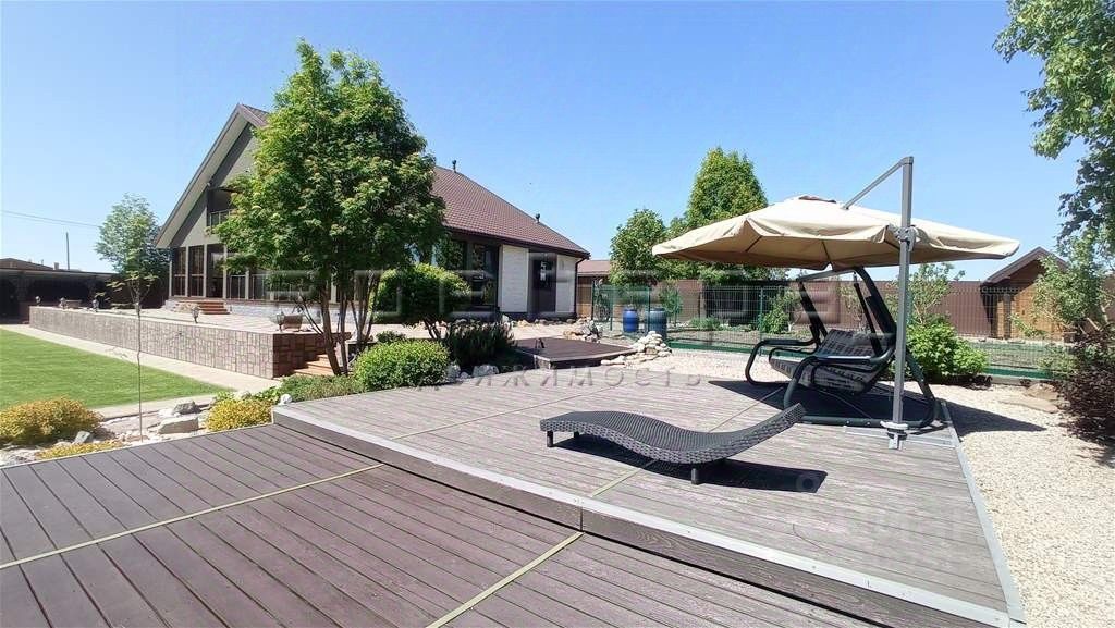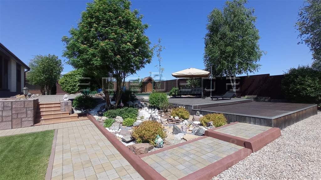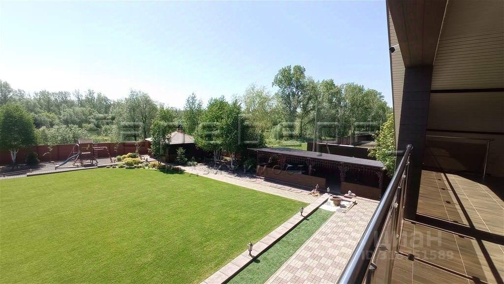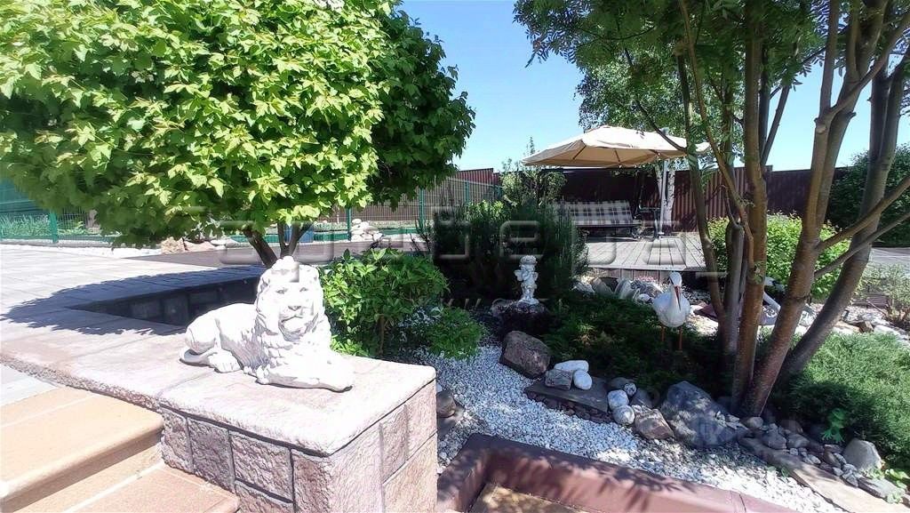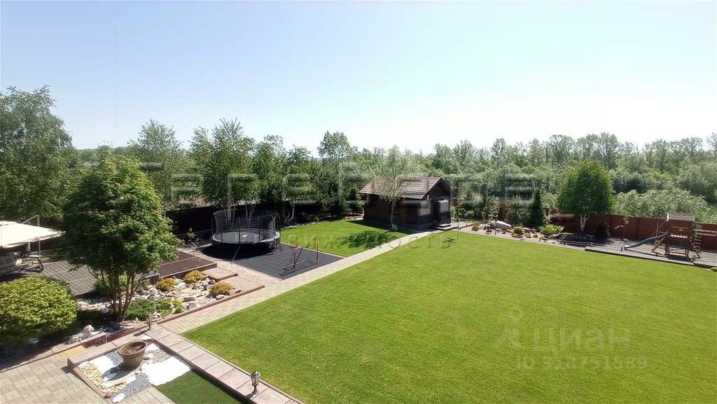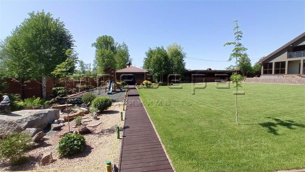 Земельный участок двухуровневый правильной формы. Выполнено грамотное зонирование, ландшафтный дизайн, газон, детская площадка, зона отдыха (качели, джакузи с подогревом, 4 лежака). Закрытая беседка, оборудованная водопроводом, кирпичным мангалом и сливом, укомплектованная мебелью и техникой: бойлер, холодильник, деревянная мебель. Капитальный гараж 63 м² + навес. Баня 28 м² с качественной отделкой, водопровод, бойлер, душ. Дорожки на участке выполнены из террасной доски из лиственницы и брусчатки.