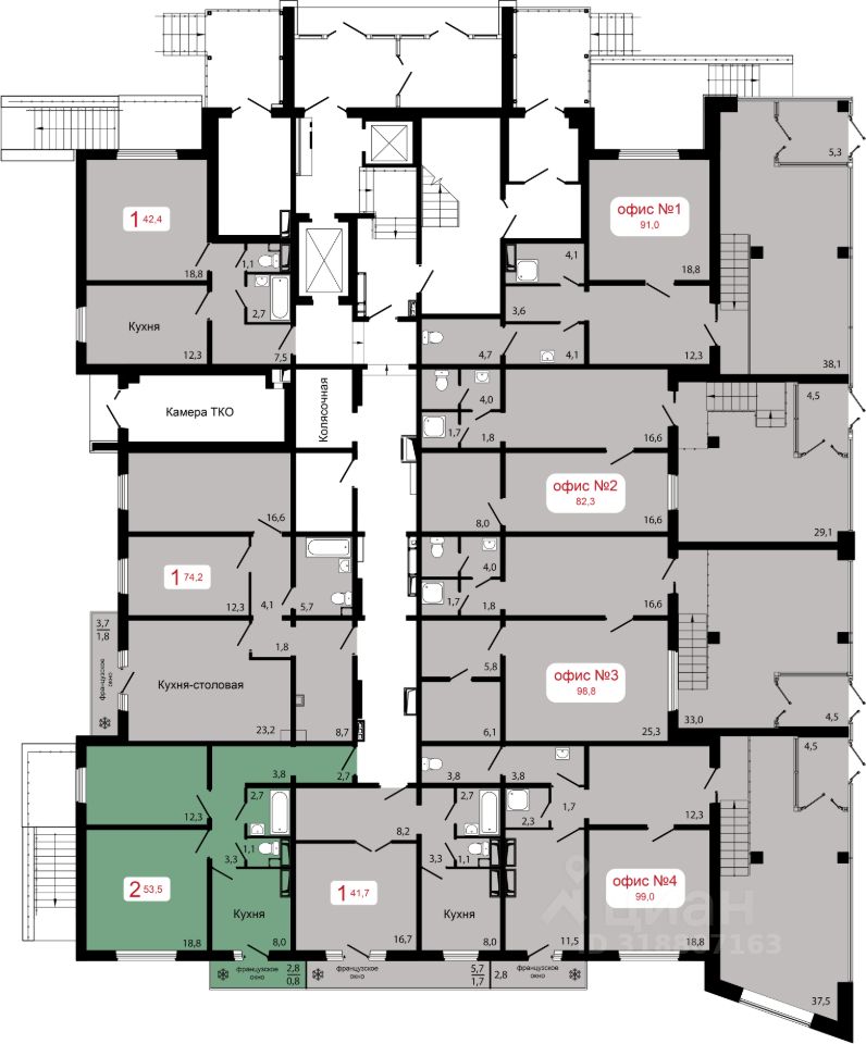Продаётся 2-комнатная квартира в строящемся доме (Дом 5.1), срок сдачи: II-кв. 2027, общей площадью 53.5 кв.м., на 13 этаже.