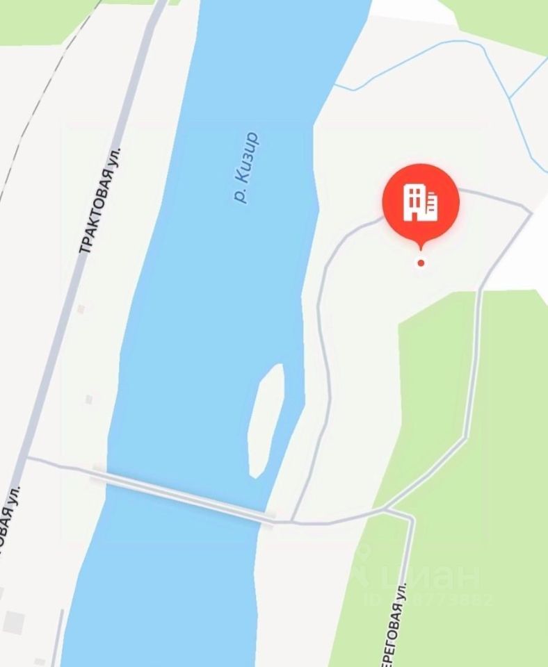 К сожалению фото участка нет, только с карты. Располагается на второй береговой линии реки Кизила. К участку отличный подъезд через железобетонный мост. Есть линия электропередачи рядом. Собственник Ирина.