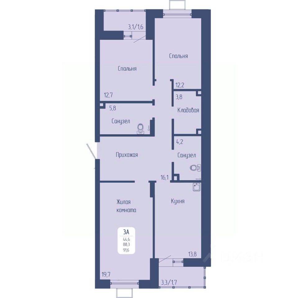 Общая площадь91,6 м2