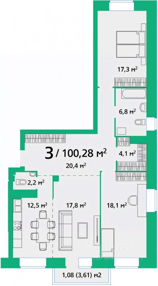 Продаётся 3-комнатная квартира в сданном доме (Корпус 2), срок сдачи: II-кв. 2023, общей площадью 100.28 кв.м., на 4 этаже. Новый жилой комплекс - это классический кирпичный дом с толщиной стен 820 мм, с просторными квартирами расположен на ул.Березина, 82 Д, в спальном районе микрорайона Покровский. Жилой дом будет располагаться во дворе, в далеке от шумных магистралей и загазованных улиц.Жилой комплекс состоит из двух жилых домов. Дом 1 представляет собой пяти подъездный 9-этажный кирпичный дом на 216 квартир. Во дворе дома проектом предусмотрена подземная автопарковка.Наша компания стремится удовлетворить потребности всех жителей города. Отличительной чертой проекта является разнообразие планировочных решений. От 1-комн квартир стандартной планировки, 2-комн - крупногабаритных квартир свободной планировки до 3-комн квартир с большими просторными комнатами и 4-комн - где сможет разместиться большая счастливая семья. Мы реализовали мечту каждой хозяйки - это кухня с выходом на балкон.Территория дворового пространства будет оборудована игровыми комплексами для детей разного возраста, спортивной и гимнастической площадками, с современным и безопасным покрытием. Проектом предусмотрено озеленение территории. Дворовое пространство будет заполнено множеством кустарников, медоносными липами и душистой сиренью.На первых этажах ЖК размещаются нежилые помещения, в которых в будущем будут располагаться организации сферы услуг, имеющие самостоятельные выходы, обособленные от жилых подъездов Жилого комплекса.Однокомнатные квартиры площадью от 36,71 кв.м.Двухкомнатные квартиры площадью от 54,10 кв.м.Трехкомнатные квартиры площадью от 82,31 кв.м.И четырехкомнатные квартиры площадью от 115,23 кв.м.Из окон верхних этажей с восточной стороны дома, открывается прекрасный вид на Енисей. С западной стороны - на Покровскую гору.Инфраструктура:Покровка - молодой, динамично развивающийся район. Остановки общественного транспорта расположены на улицах Мужества и Линейная, находятся в шаговой доступности. Удобное местоположение дома позволит в течение 10 минут добраться до центра, до микрорайона Взлетка и в Октябрьский район.Рядом, со строящимся ЖК ''На Березина'' находятся:Образование:Во дворе ЖК расположен государственный детский сад (Мужества, 22Д),- 2 государственных детских сада: Линейная, 76Д, Березина, 88,- 4 частных детских сада: Линейная, 86, Линейная, 88, Линейная, 99, Мужества, 23,- общеобразовательная школа, МАОУ СШ 153: Линейная, 99Г.Здравоохранение:- детская поликлиника: Шахтеров, 25,- 6 стоматологических клиник,- 4 аптеки,- 4 медицинских центра,- Клиника НИИ медицинских проблем Севера: Шахтеров, 25.Спорт:- клуб физической культуры: Линейная, 90,- спортивные и детские площадки,- арена-Север, ледовый дворец: 9 мая, 74,- в скором времени планируется строительство Аквапарка, его возведут в строящемся микрорайоне ''Слобода Весны'' на пересечении ул. Петра Подзолкова и ул. 9 Мая.Другая инфраструктура:- отдел полиции 1: Линейная, 84,- рынок Енисейский,- супермаркеты