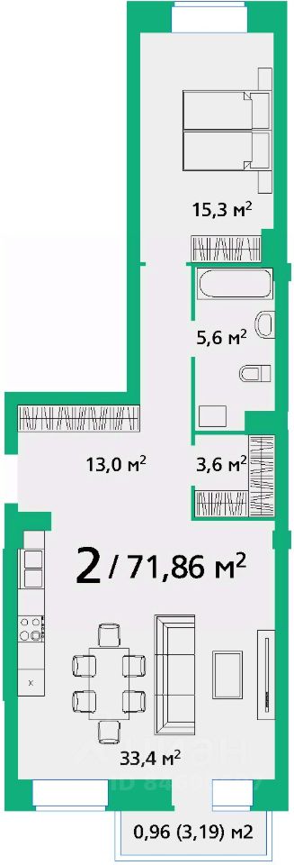 Общая площадь71,86 м2