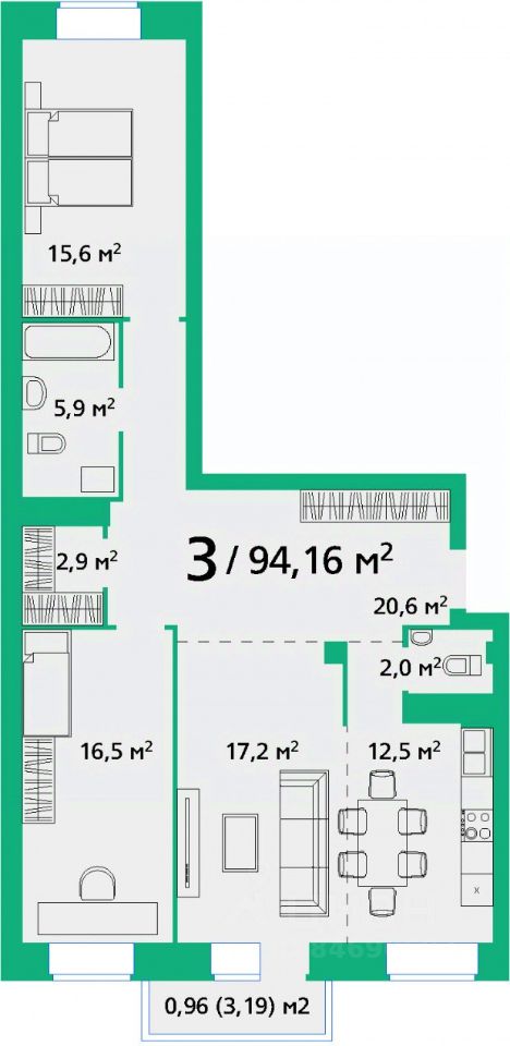 Общая площадь94,16 м2