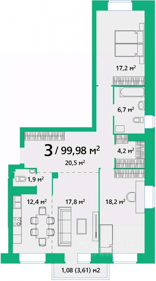 Общая площадь99,98 м2