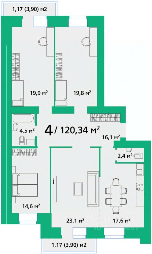 Общая площадь120,34 м2