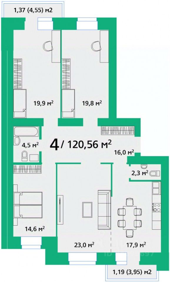 Общая площадь120,56 м2