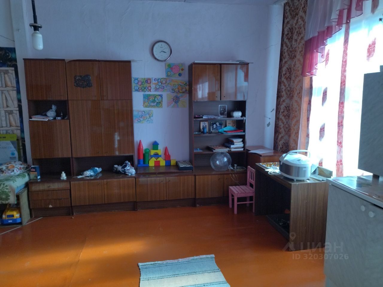 Дом на одного хозяина, большой но требующий ремонта. Большая кухня 30 квадратов, большой просторный коридор, 6 комнат+2 проходные. Септик. Электричество на три фазы. Окна деревянные. В одной комнате пластиковое окно. Отопление и воды нет. Есть батареи, но нужно запитываться к центральному отоплению и водоснабжению. Сделан косметический ремонт в большей части комнат. Есть помещения для ванной комнаты и туалета. На участке есть колонка(насос), бочка на три куба и фундамент под баню. Часть участка перед домом асфальтирована. В саду: 2 яблони, малина, вишня, черешня, смородина, крыжовник, декоративные кустарники.