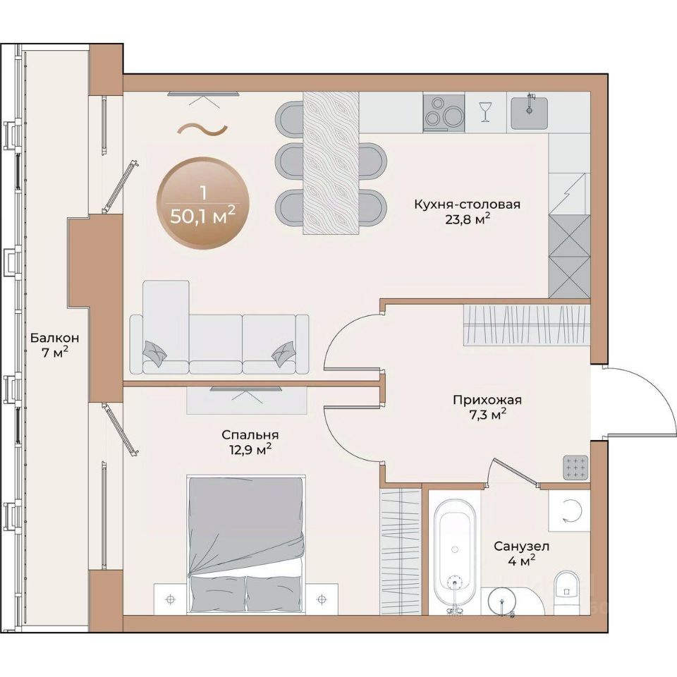 продам 1-к, Партизана Железняка, 35а/19 519 000 ₽