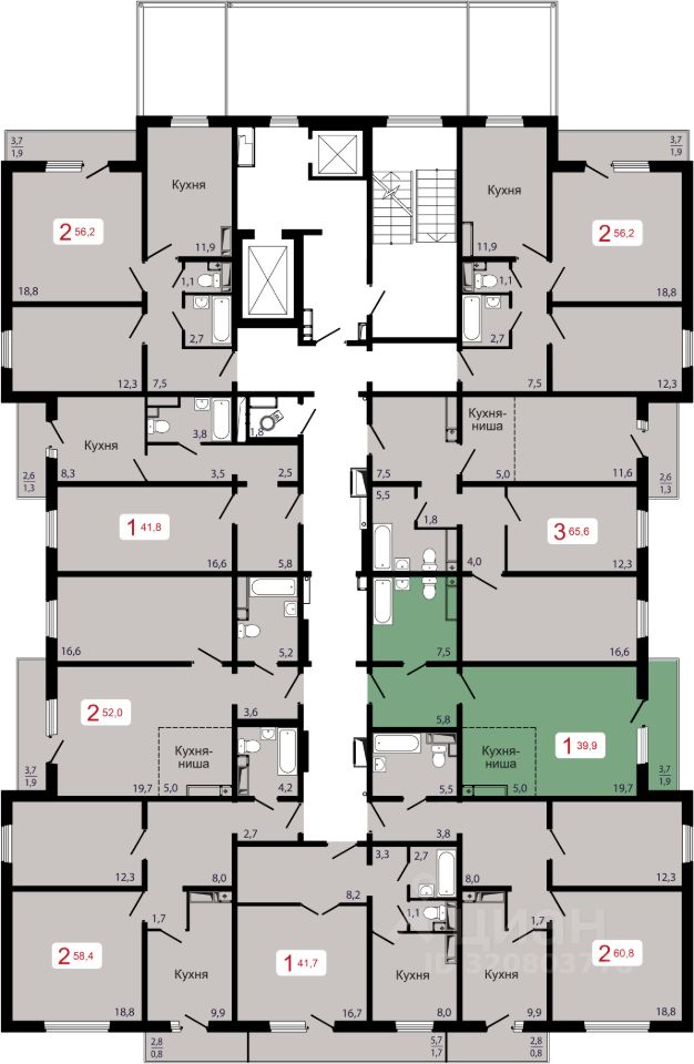 Продаётся 1-комнатная квартира в строящемся доме (Дом 7 строение 5), срок сдачи: II-кв. 2027, общей площадью 39.9 кв.м., на 17 этаже.