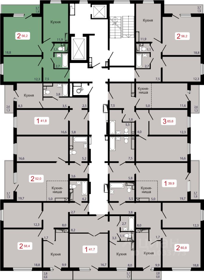 Продаётся 2-комнатная квартира в строящемся доме (Дом 7 строение 5), срок сдачи: II-кв. 2027, общей площадью 56.2 кв.м., на 9 этаже.