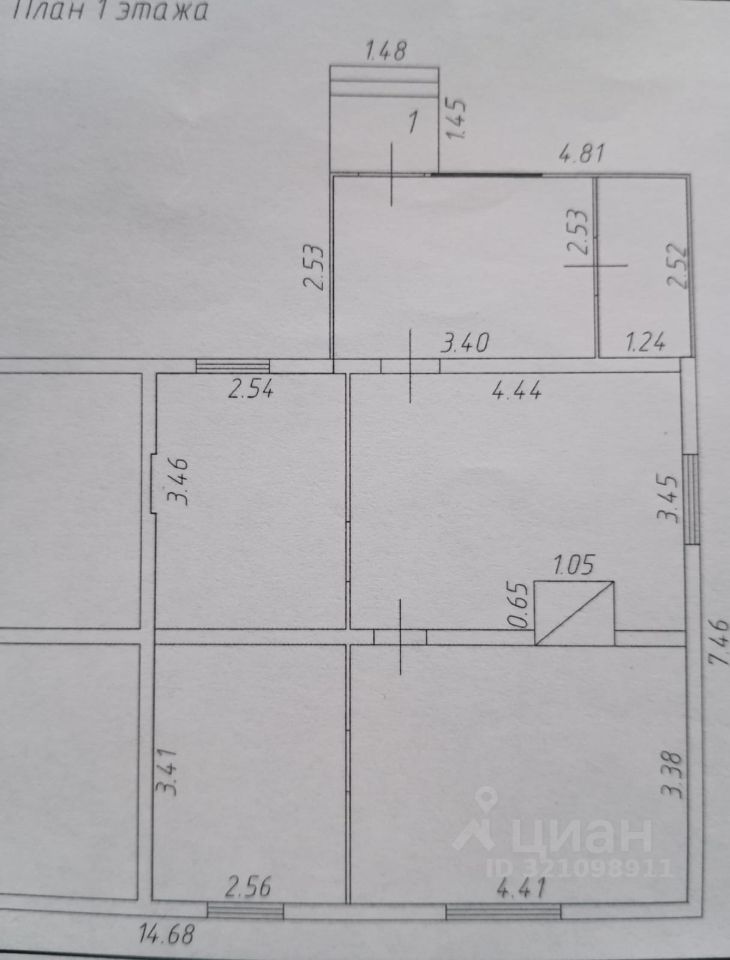47 м², 3 комнаты + кухня. В эту площадь не входят сени с кладовкой.
