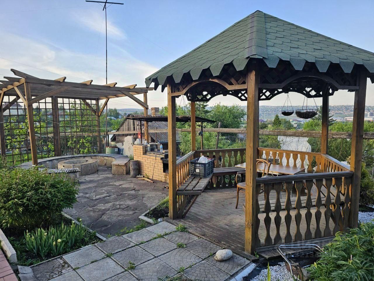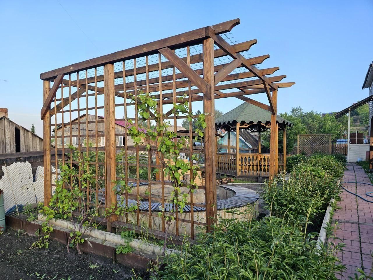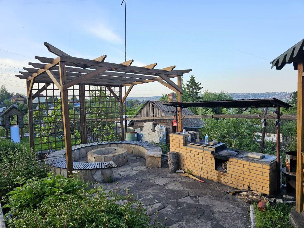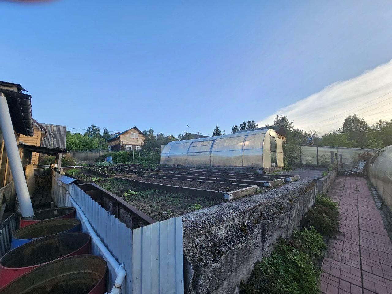 Участок 14 соток — всё для отдыха и хозяйства: Детский уголок, беседка, зона барбекю и мангал — для летних вечеров с семьёй и друзьями. Баня для зимних вечеров, две теплицы (83 м и 153 м) и плодородный чернозём для собственного урожая. Сад с грушей, абрикосом, сливой, вишней, черешней, малиной, жимолостью, виноградом Изабелла и смородиной. Весь участок ухожен, дорожки выложены брусчаткой, забор с коваными элементами и бетонная площадка на два автомобиля.