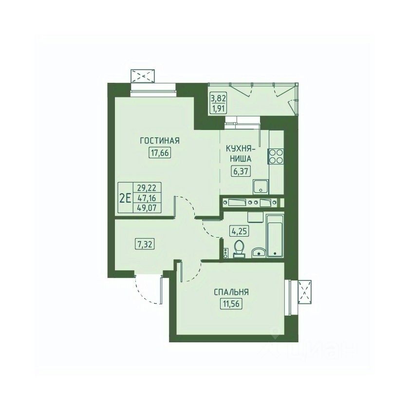 Общая площадь49,07 м2