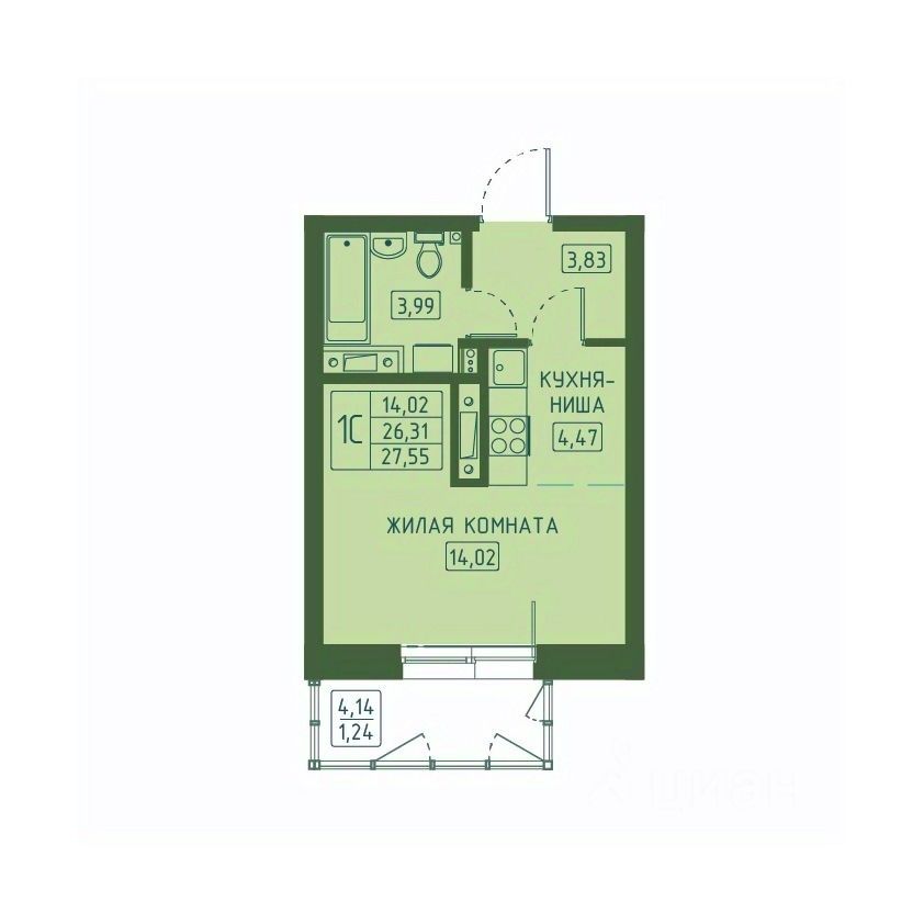 Общая площадь27,55 м2
