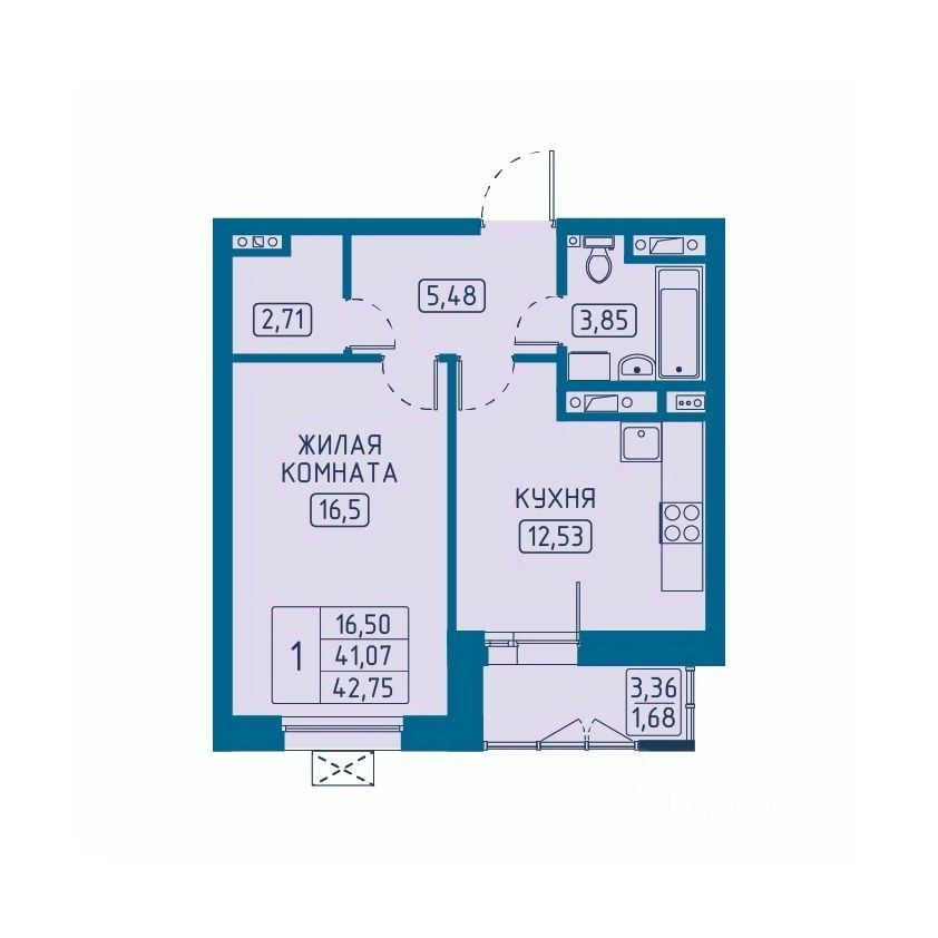 Общая площадь42,75 м2