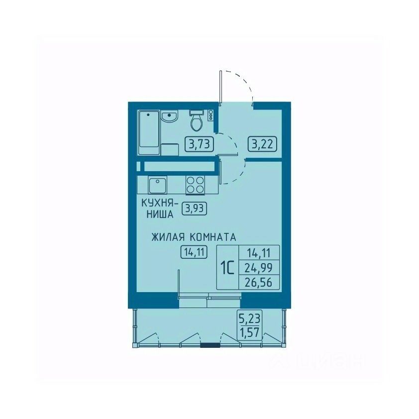 Общая площадь26,56 м2