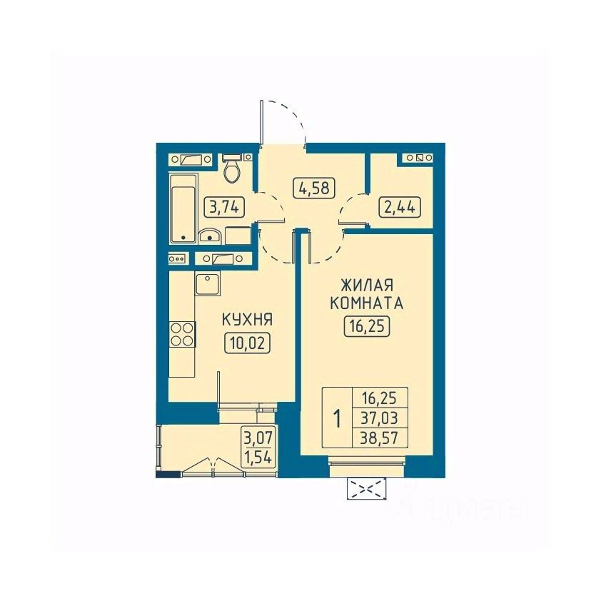 Общая площадь38,57 м2