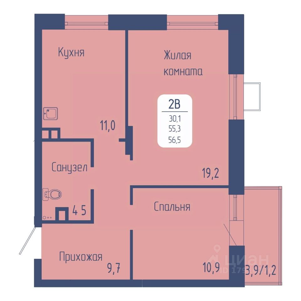 Общая площадь56,5 м2